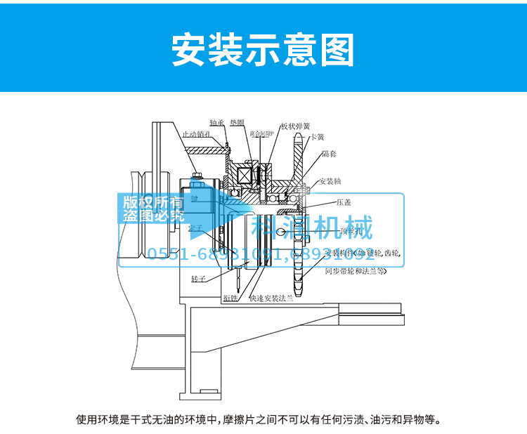 摩擦材料壽命:摩擦襯墊的壽命取決于許多因素, 即慣性減速或停止, 一起旋轉(zhuǎn)的相對應(yīng)的速度, 工作時間吸合分開的頻率, 溫度在摩擦表面等。科潤機械電磁離合器,安裝使用場合必須要在運行旋轉(zhuǎn)的干的環(huán)境。油、油脂、異物及其它潤滑劑影響摩擦材料的壽命和特性。