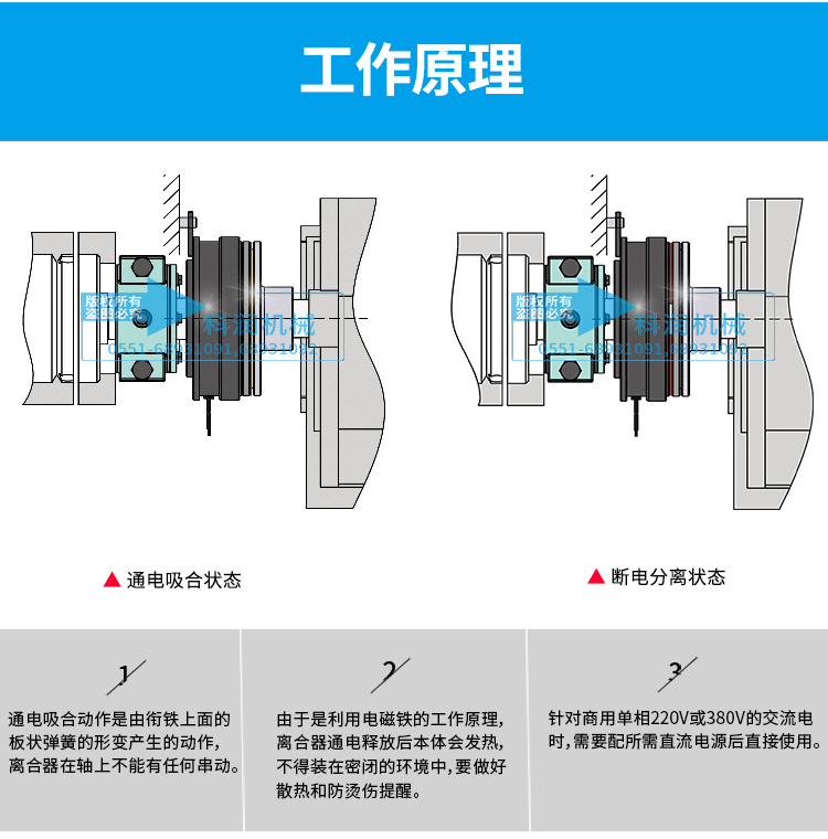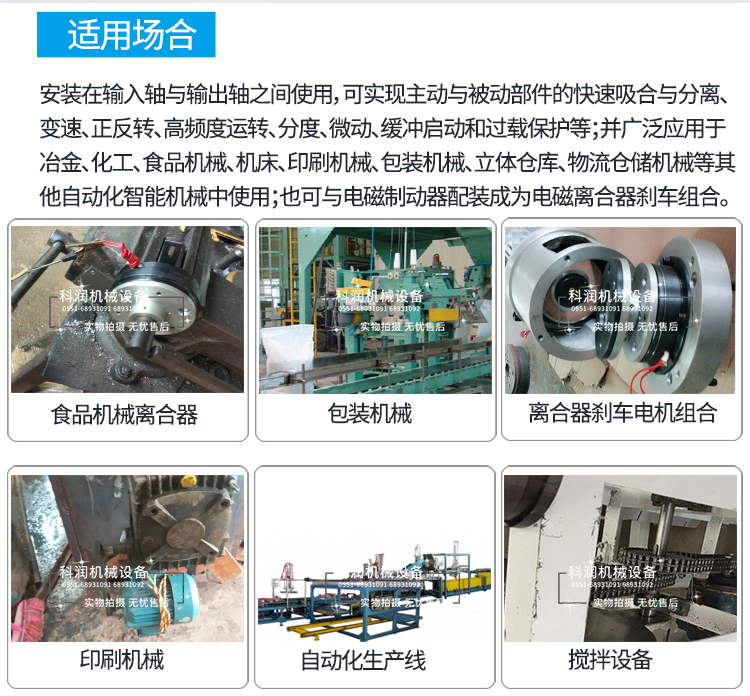 由摩擦式電磁離合器徑向帶滾動軸承的電磁離合器,直接安裝在輸出軸與輸入軸之前,起到專遞扭矩與通電吸合、斷電分離的功能。
