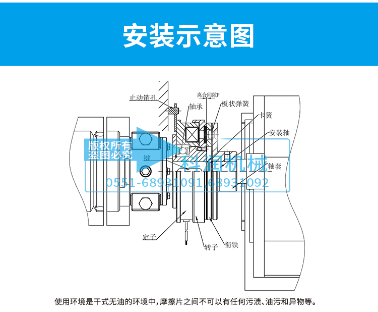 此種形式的電磁離合器對安裝要求非常苛刻,必須保證兩根軸的絕對同心,定子摩擦面與銜鐵面的垂直度與離合吸合分開的間隙,并讓這些值一直保持著不會發生變化,否則電磁離合器就會出現不吸合,吸合不徹底,專遞扭矩降低,離合失效等情況發生。