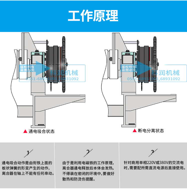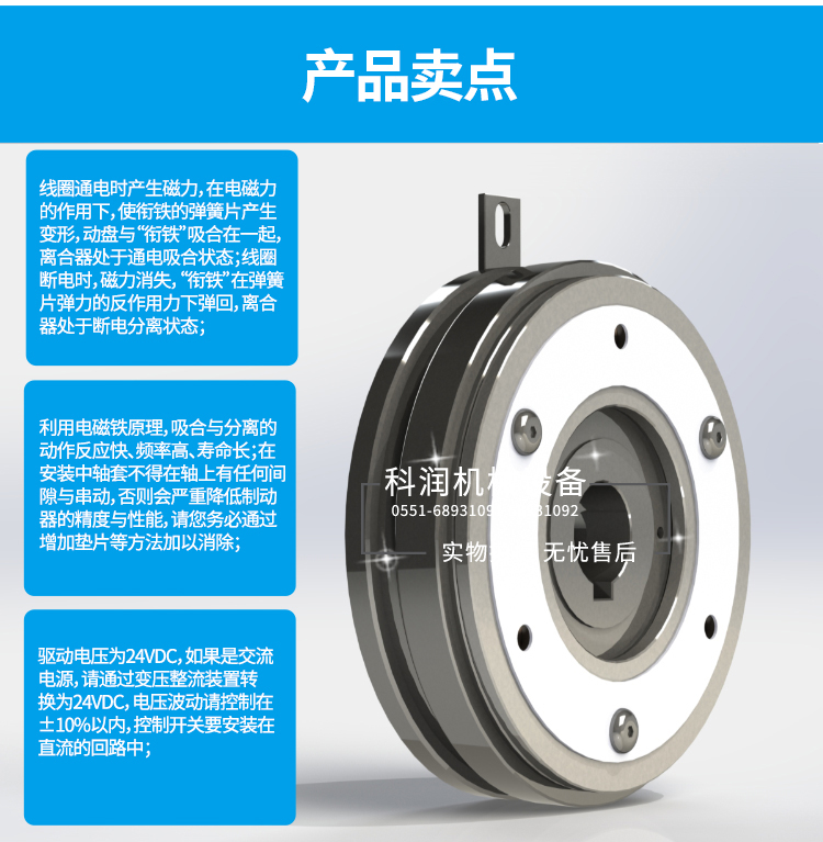 1、干式電磁離合器由徑向帶內軸承式電磁離合器主體與銜鐵組合構成方便于安裝的干式單片電磁離合器(基準經濟型)。