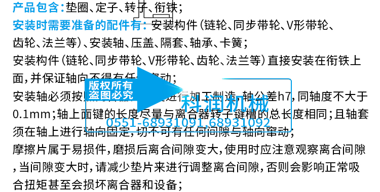 2、銜鐵與法蘭構件配合,可自行與帶輪、鏈輪、齒輪等構件配合安裝使用。